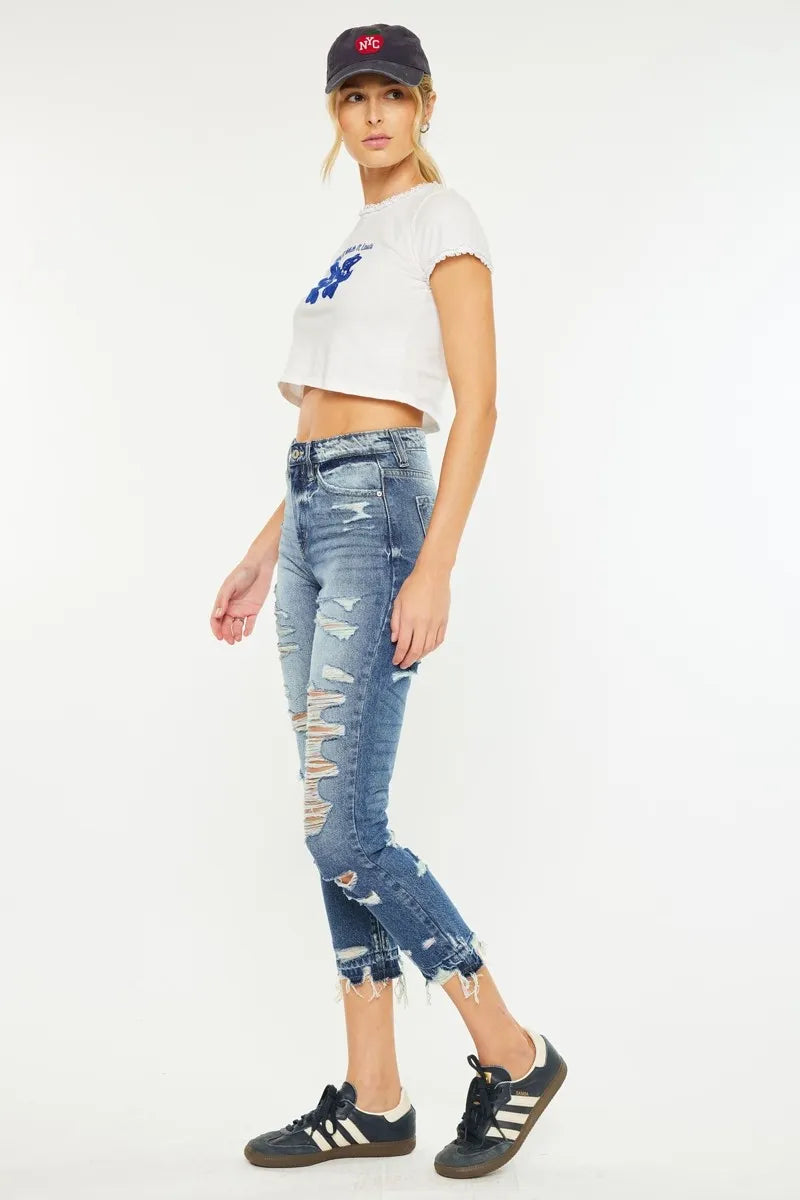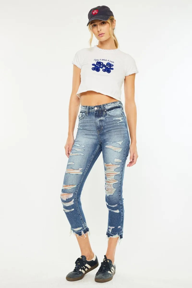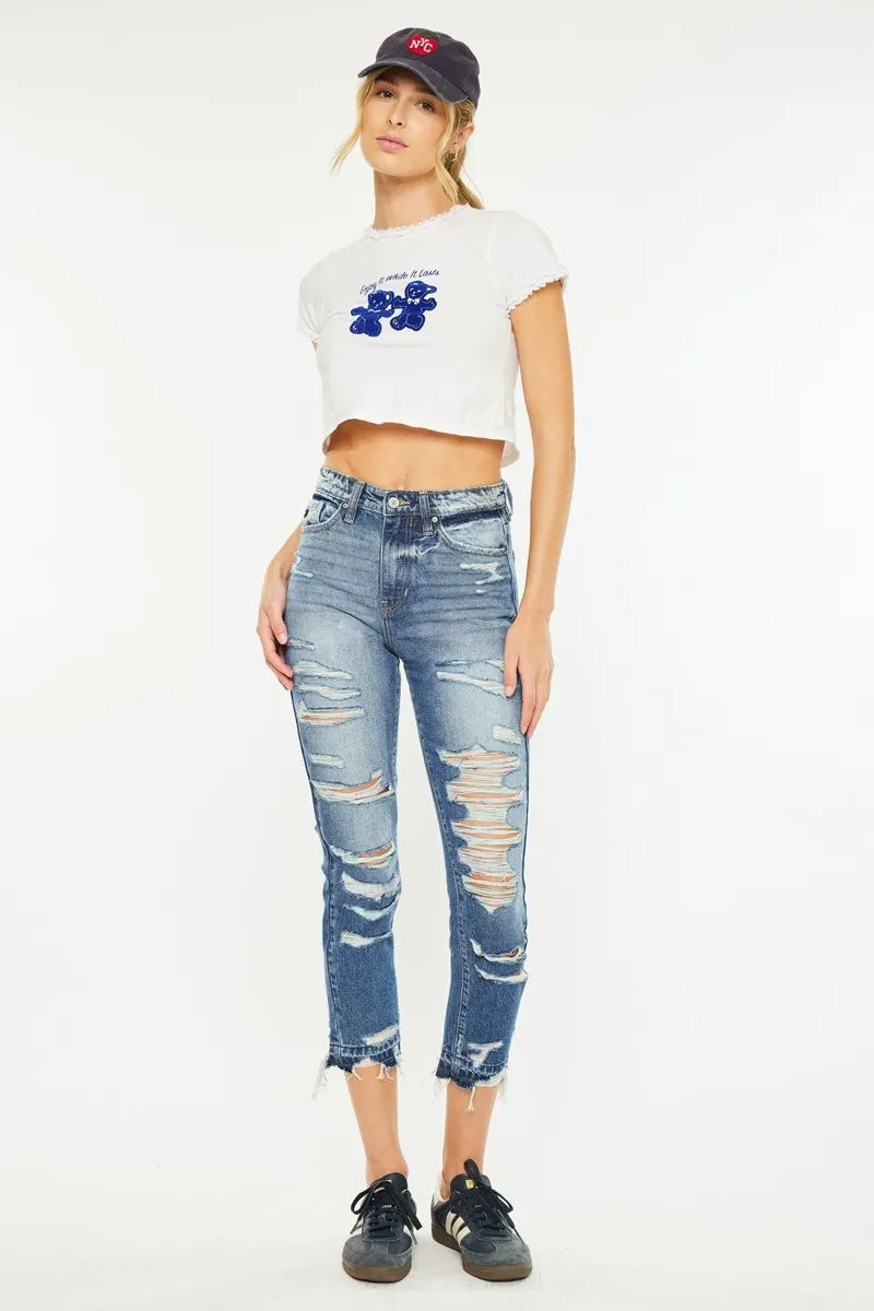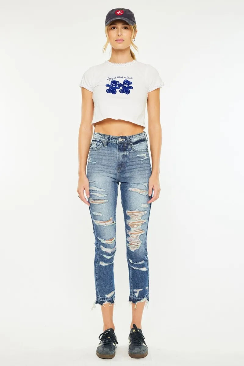 Kancan High-Rise Slim Fit Raw Hem Ankle Jeans