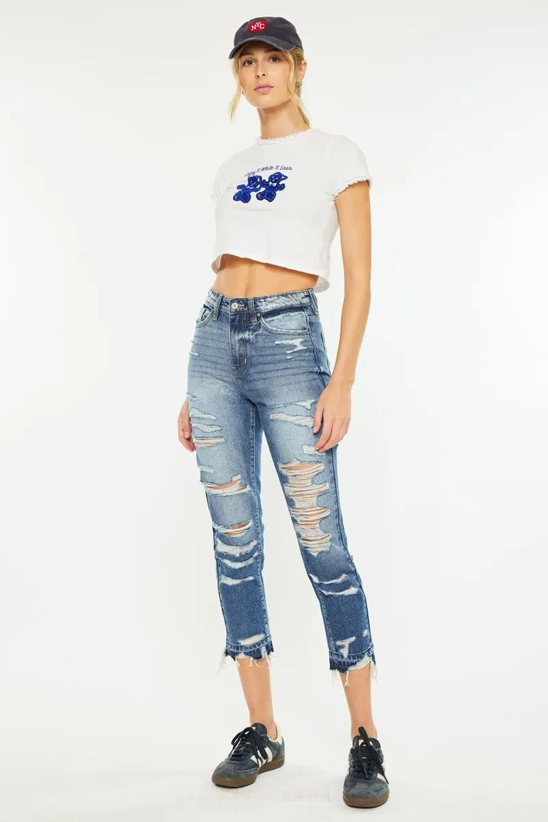 SaleKancan High Rise Distressed Mom Fit Jeans
