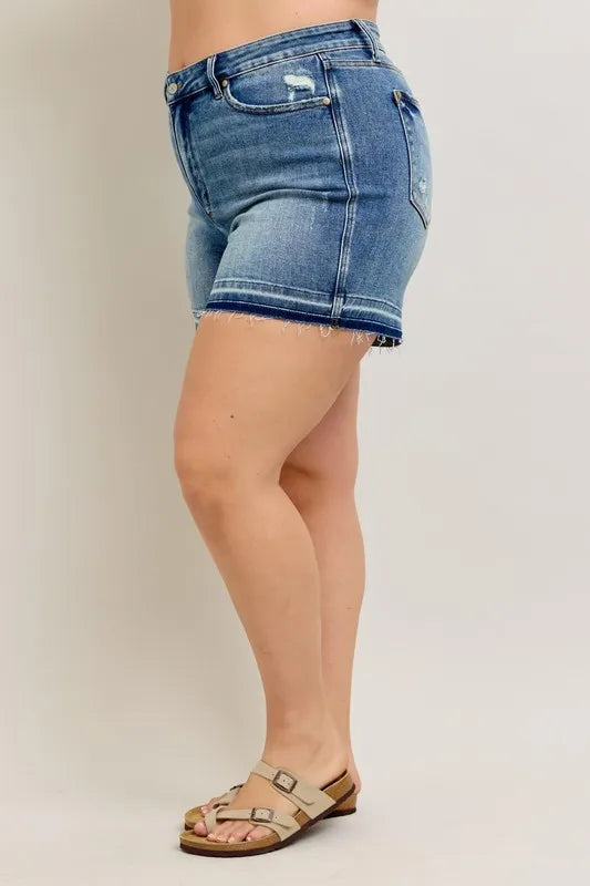 Judy Blue Plus Size Mr Tummy Control Vintage Wash Release Hem Shorts